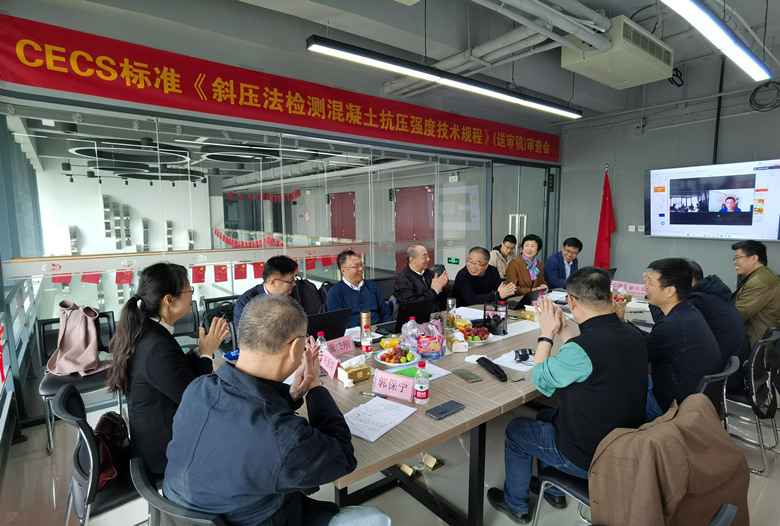 2023年3月28日,由河北省建筑科學研究院有限公司聯(lián)合河北建筑工程質量檢測中心有限公司、邢臺市建設工程質量檢測有限公司、承德中天建設工程檢測試驗有限公司、重慶大學、張家口市建設工程質量檢測中心有限責任公司、科之杰新材料集團有限公司、河北萬博檢驗檢測技術服務有限公司、滄州市開元建筑檢測有限公司等11家單位共同編寫的中國工程建設標準化協(xié)會標準《斜壓法檢測混凝土抗壓強度技術規(guī)程》(送審稿)審查會以線上線下相結合的方式召開。中國工程建設標準化協(xié)會領導、標準審查組專家以及標準編制組成員30余人參加了本次會議。